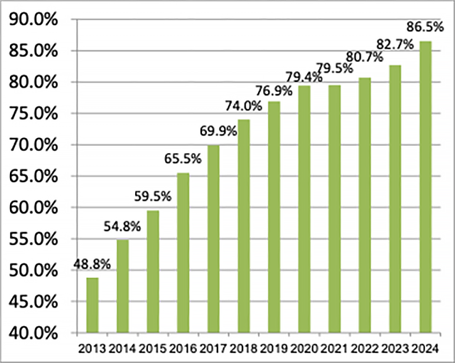 Recent Generic Volume Share (%) of the Market replaceable by Generics in new Index from FY 2013