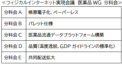 医薬品WGでは、医薬品物流が抱える課題を受けて5つの分科会を設置し、実現に向けた課題の検討に着手しています。