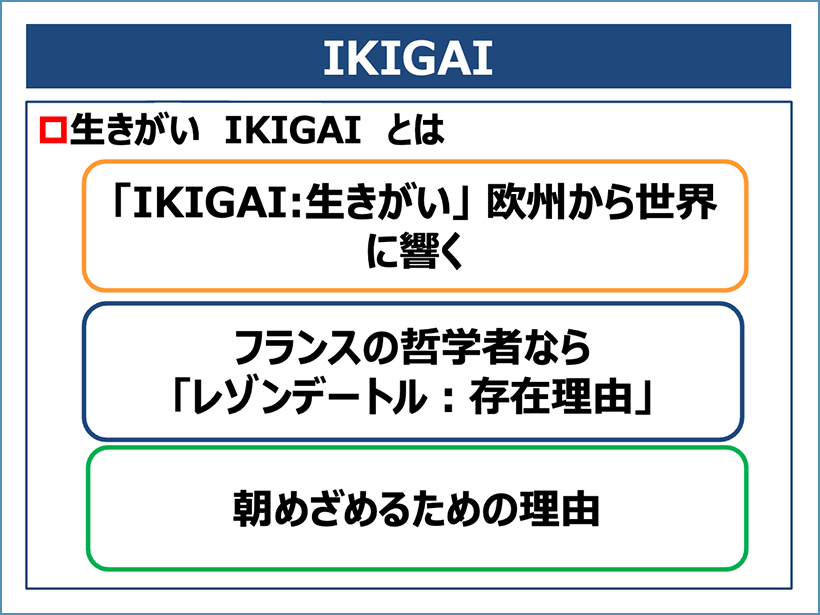 また、IKIGAIは、ビジネスパーソン一人ひとりの人生において大いに勇気づけられる言葉ではないでしょうか。